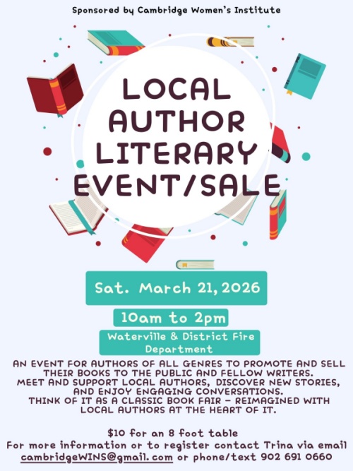Saturday March 21, 2026 10 am – 2 pm Waterville & District Fire Department Waterville, Nova Scotia